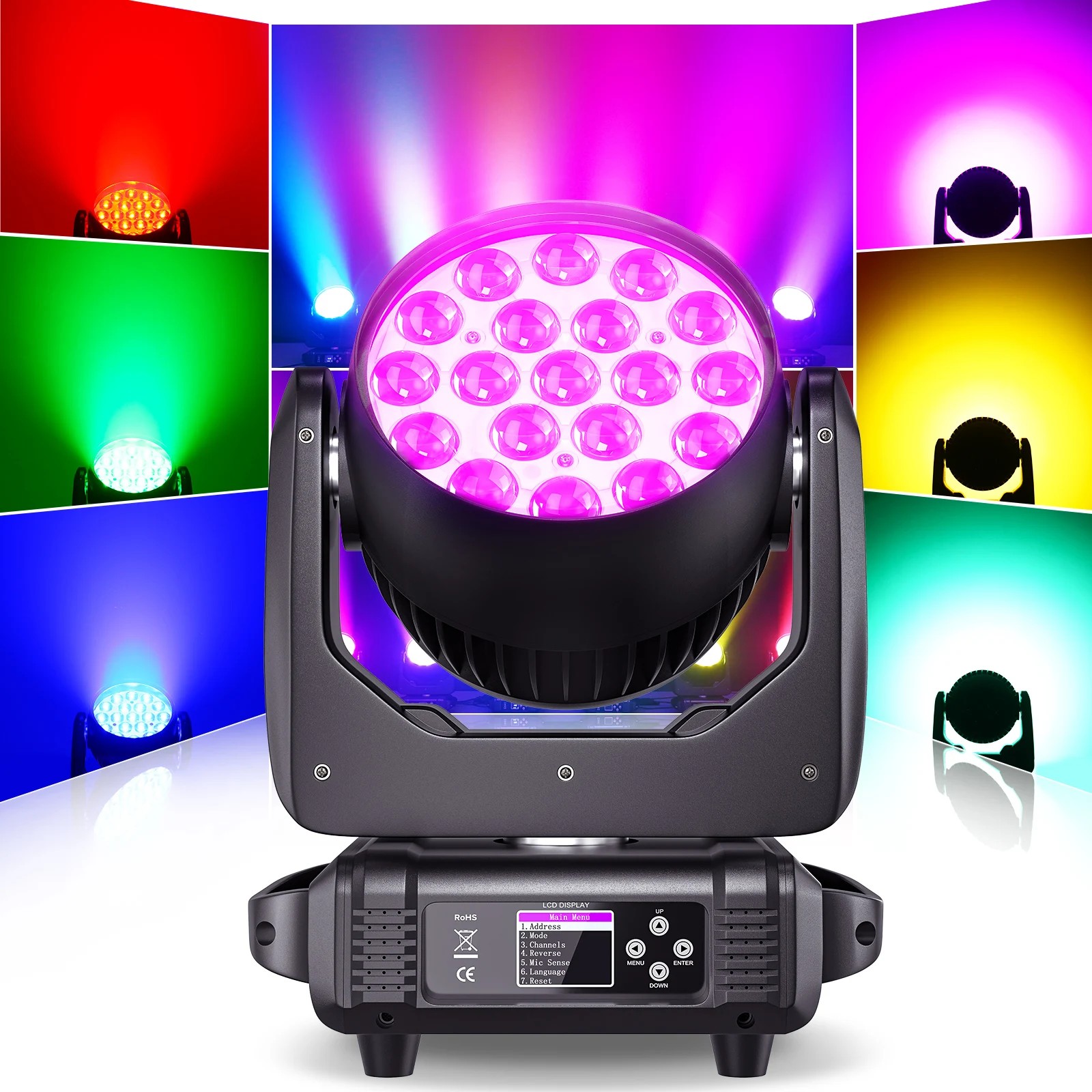 产品名称:19颗15W摇头染色灯